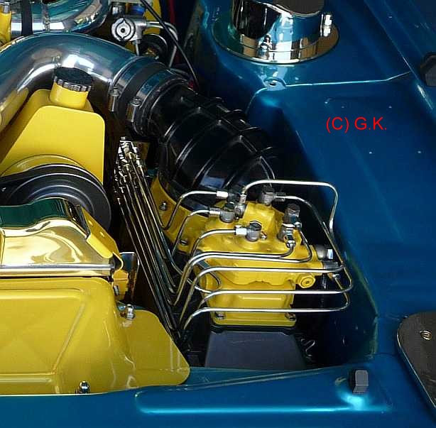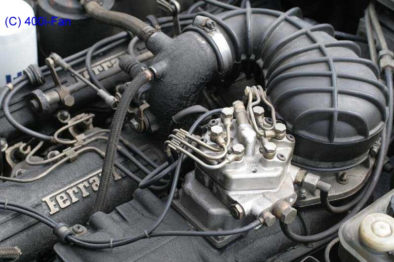 Der 12-Zylinder-Motor des Ferrari 400i hat an jeder Zylinderbank einen eigenen Mengenteiler Bosch-Nr. 0448100055 6. Besser als bei Mercedes sind die Anschlüsse der Einspritzanleitungen am Mengenteiler. Einige Beschreibungen des Gran Tourismo 400i findet man mit Google, z.B. http://www.youngtimer-revue.de/ferrari-400-ferrari-412-der-gunstige-einstieg/. |