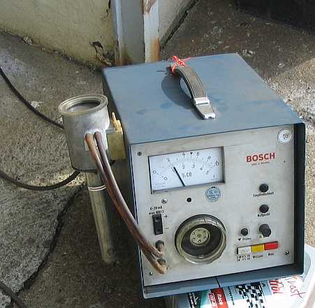 Die CO-Werte beeinflussen den Benzinverbrauch und die Leistung. Ich konnte mit einem CO-Messgerät mal beim 280GE das Einstellen "üben" (Danke Otto). Der Motor sollte betriebswarm sein, aber nicht zu heiss. Die Einstellung an der Leerlaufgemischschraube neben der Stauscheibe mit dem 3mm-Sechskant-Schrauber ist sehr feinfühlig. Eine kleine Drehung verändert drastisch den CO-Wert. Nach jeder Verstellung sollte man auch mal Gasgeben und warten, bis der angezeigte CO-Wert konstant bleibt. Danach muß jedesmal auch wieder die Leerlaufdrehzahl mit der weißen Plastik-Leerlaufschraube korrigiert werden. Damit verändert sich wieder der CO-Wert. So muß mehrmals korrigiert werden, bis alles stimmt. Nun springt der Motor noch schneller an und beschleunigt noch besser. Also ist die Messung und Einstellung des CO-Wertes absolut notwendig. |