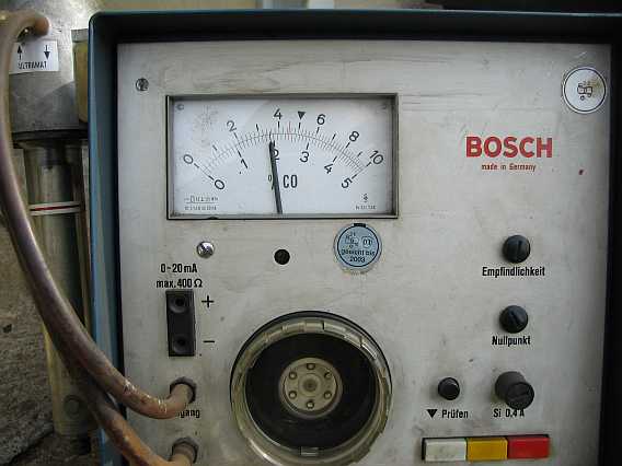 Die Abgasmessung Anfang Oktober 2010 ergab nach einer neuen Einstellung auf besten Motorlauf (ohne Messgerät) einen CO-Wert von 0,135 Vol.-Proz (siehe auch Tipp98-2-1, Abschnitt 3.4) beim Bosch-Dienst. |