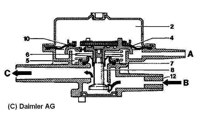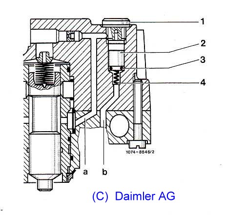 Druckausgleichsventil (Leichtmetall), laut EPC-Net: A0000740713, sitzt neben dem Luftmengenmesser. Der Mercedes-Nr. entspricht die Bosch-Nr. 0438100054 (Ersatztyp für 0.438100069), ersetzt durch F026-TX2-024. In meinem 280GE ist ein Leichtmetall-Mengenteiler Bosch-Nr. 0438100069 mit Druckausgleichventil eingebaut.
