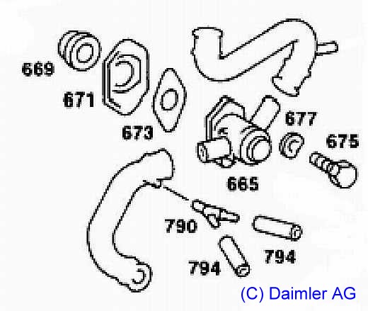 | Später wurde eine längere Leitung A110-070-3732 - 99,79 Euro ohne MwSt. mit dem gleichen Tecalaneinsatz eingebaut, der Druckdämpfer A000-078-0592 entfiel, da die längere Leitung genügend dämpft. |