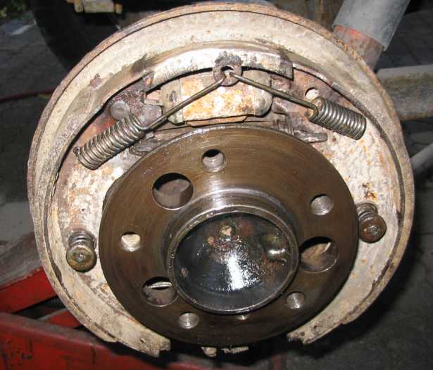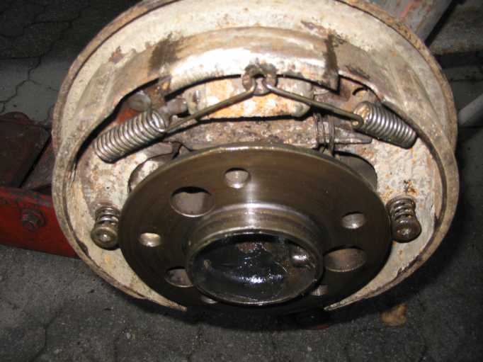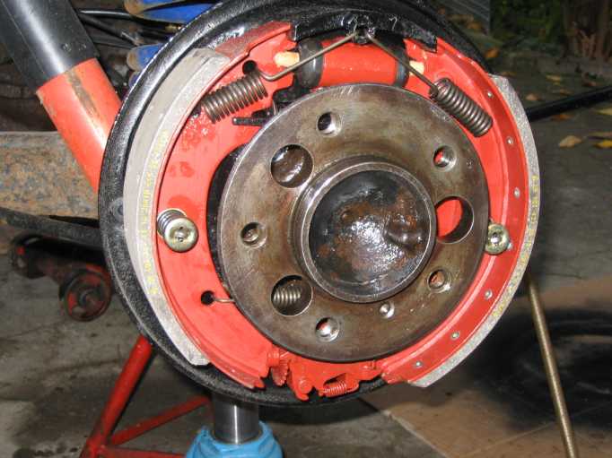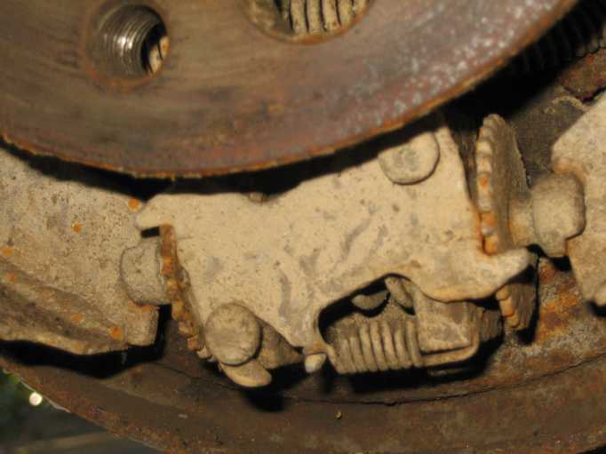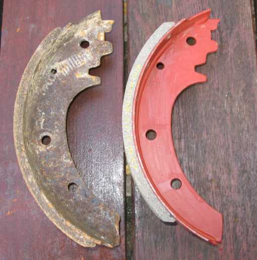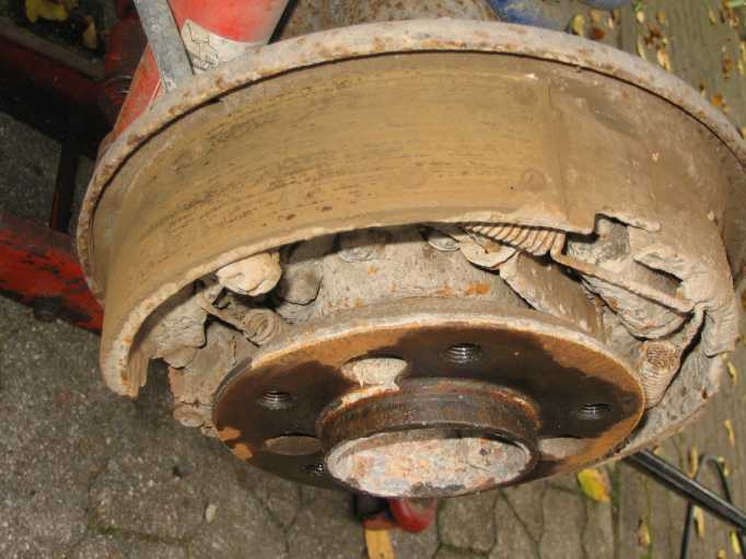 Allerdings war der falsche, längere Bremsbelag auf der vorderen Bremsbacke (Primärbacke, in Fahrtrichtung vorne) montiert, da soll der kürzere Belag aufgenietet sein. |