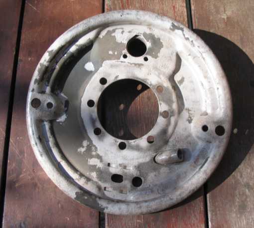 Zwei weitere Bremsträgerplatten alter Art, Danke Norbert S. (Führung Handbremsseil nicht geschraubt) werden sandgestrahlt, der Rost in den Metallporen mit Brunox versiegelt. Im Juli 2014 werden die beiden Bremsträger im 240GD verbaut, siehe Restauration 2014. |