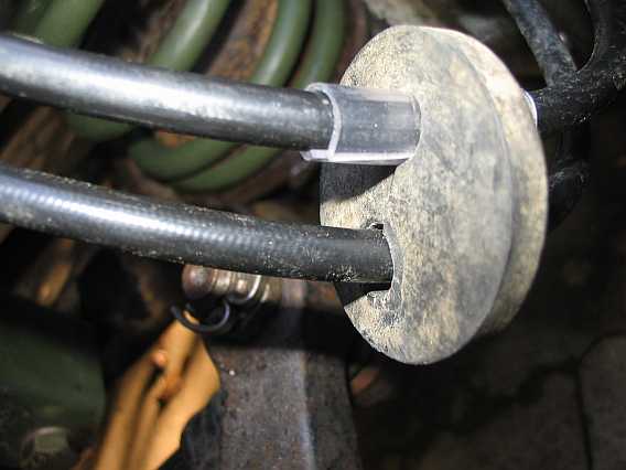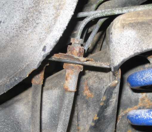 | 5 mm breite, seitliche Schlitze ermöglichen beim Ausbau des Bremssattels (z.B. beim Bremsscheibenwechsel) ein Aushängen der Bremsleitungen aus dem Halter. Sonst muß man ja die Bremse wieder entlüften. Die Schlitze in den Halterungen haben sich beim 240GD seit über 20 Jahren bewährt, siehe Tipp Nr. 13c. | ![]() |