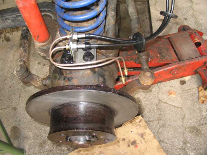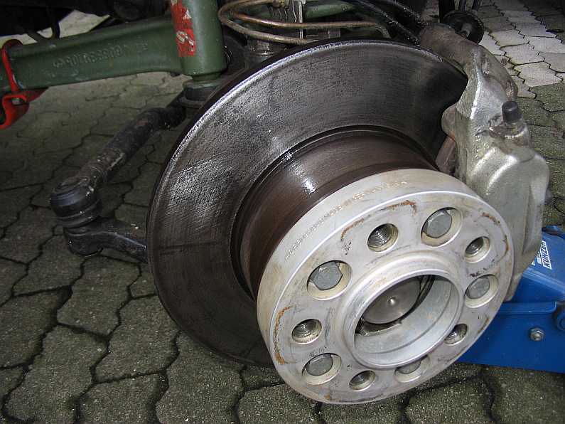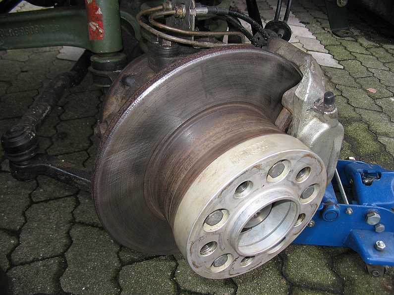 | rechte Bremse: Hier ist eine auf der Drehbank plan gedrehte Bremsscheibe eingebaut. Wie das in der Werkstatt gemacht wird, zeigt der Tipp Nr. 13. |