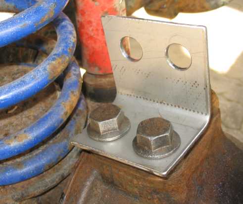 | Anstelle des alten Winkels am Differenzial hält nun ein V2A-Winkel den Leitungsverteiler und die Sperrenleitung. | ![]() |
