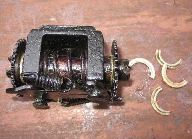 | Auch der automatische Bremsrücksteller kann wieder funktionsfähig gemacht werden. Wie er restauriert wird und funktioniert, steht hier. | ![]() |