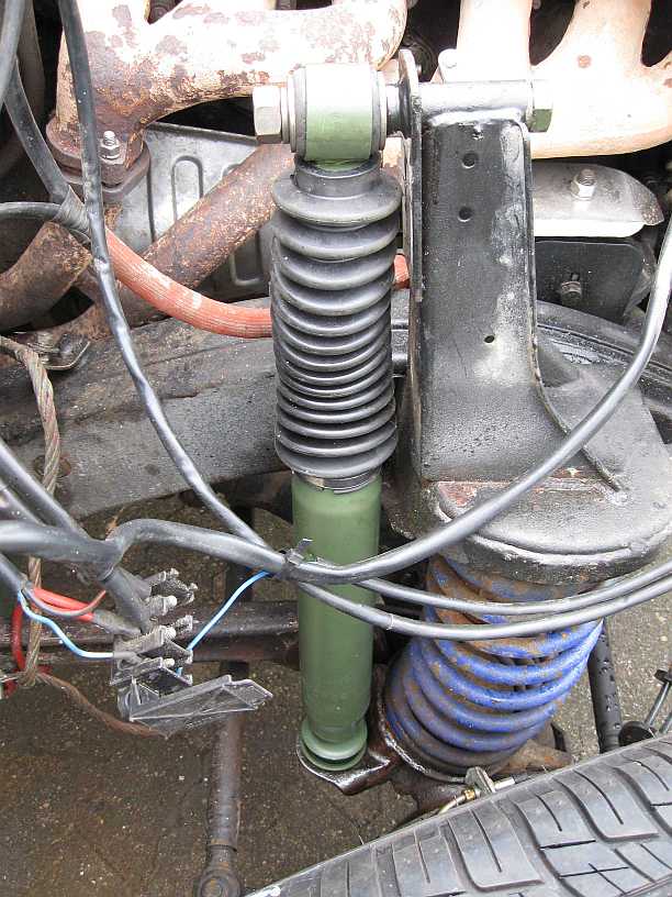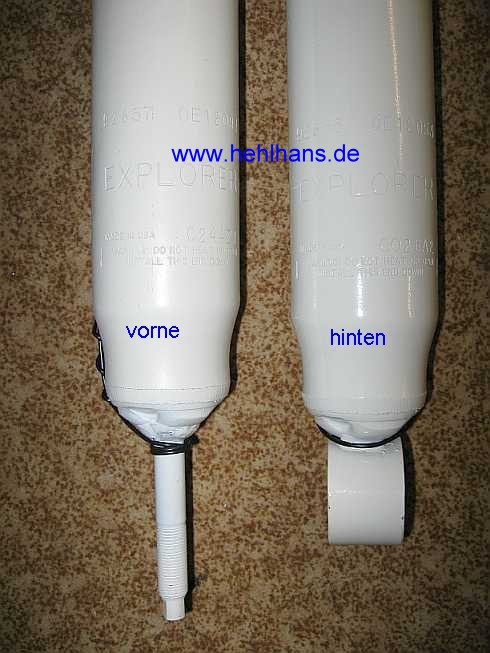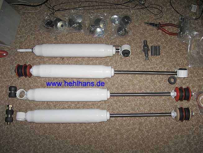 | Bei der "Zivilisierung" des Trophy-280GE nach der TAT2010 werden die zu weichen PROCOMP-Stoßdämpfer durch die vorher eingebauten Koni Heavy Track - Stoßdämpfer ersetzt. |