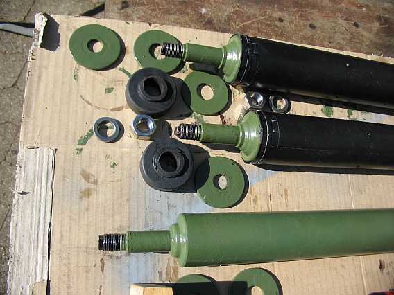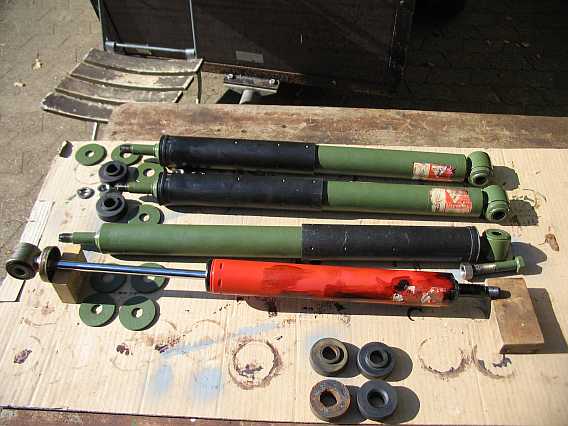 | Leider taugen die Gummischutzhüllen wenig, sie sind nun von der Kolbenstange durchgescheuert. Auch die Gummiteile oben an den vorderen Stossdämpfern sind nach zwei Jahren geschädigt. | ![]() |