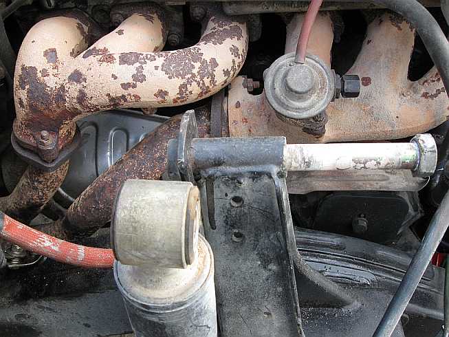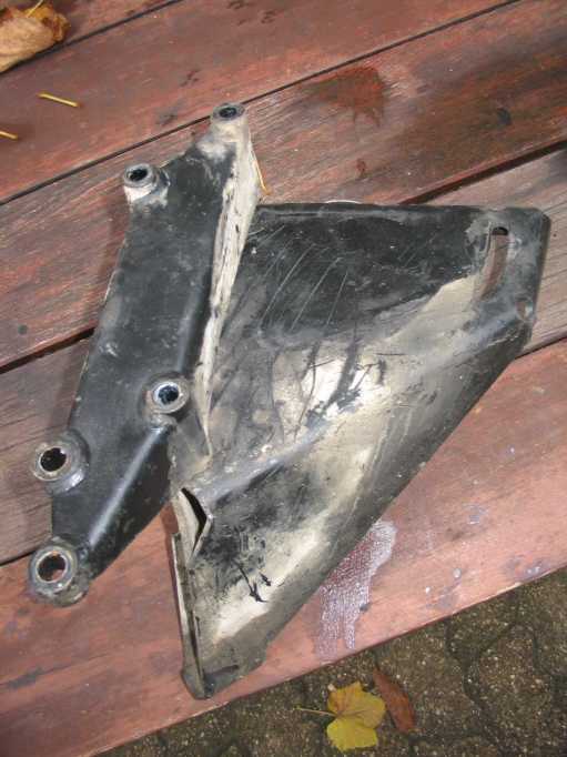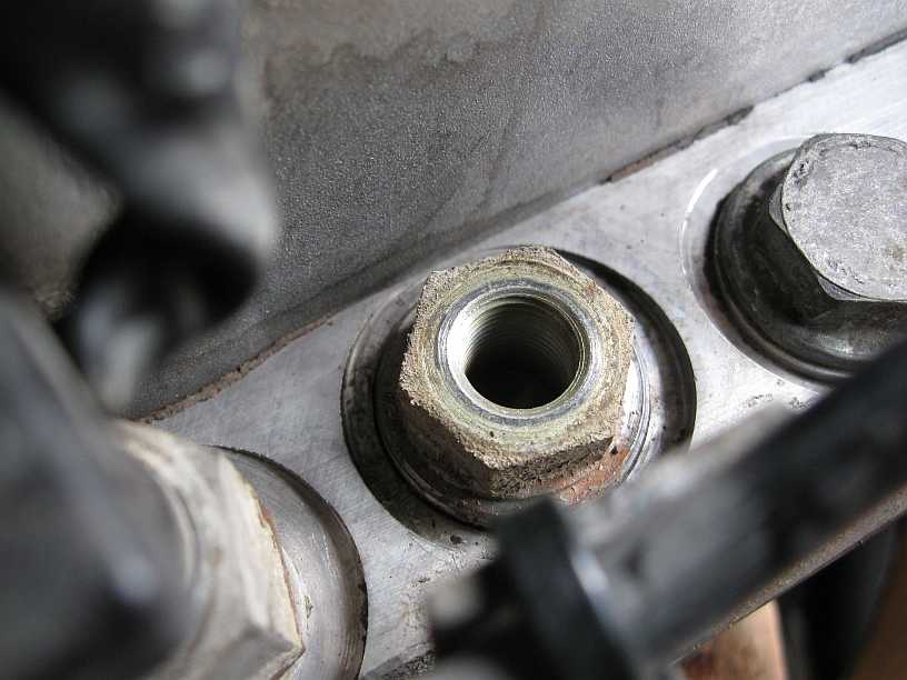 | Ein M6-Stehbolzen war schon angerostet und riss natürlich ab. Den Gewinderest habe ich stufenweise mit 3, 4 und 4,5mm-Bohrer ausgebohrt und herausgehebelt, dann das Gewinde nachgeschnitten. | ![]() |