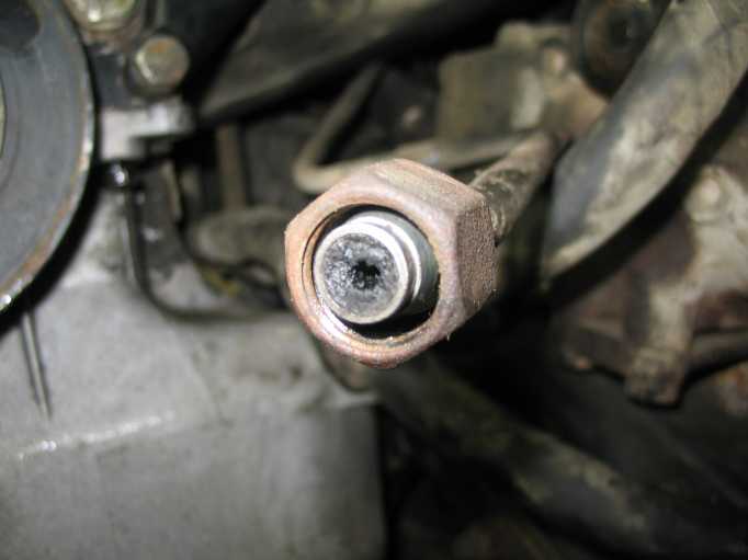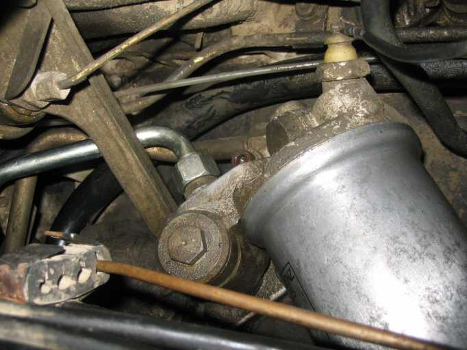 | Zum Ausbau müssen neben den drei Inbus-Schrauben auch die kleine Entlüftungsleitung abgeschraubt werden. | ![]() |