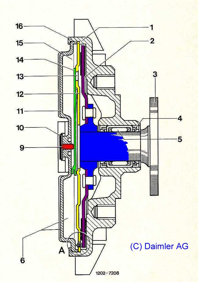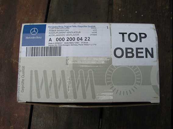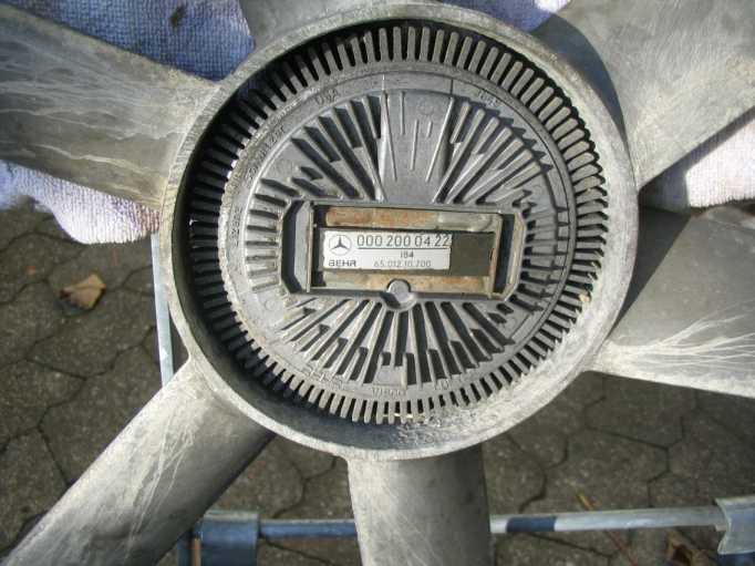 | Verbaut ist ein Visko-Lüfterantrieb A0002000422 von Behr Nr. 65.012.10.700. Die Keilriemenscheibe ist nur aufgesteckt, oft aber festgerostet. | ![]() |